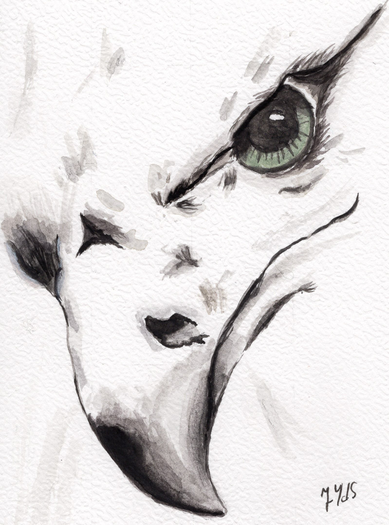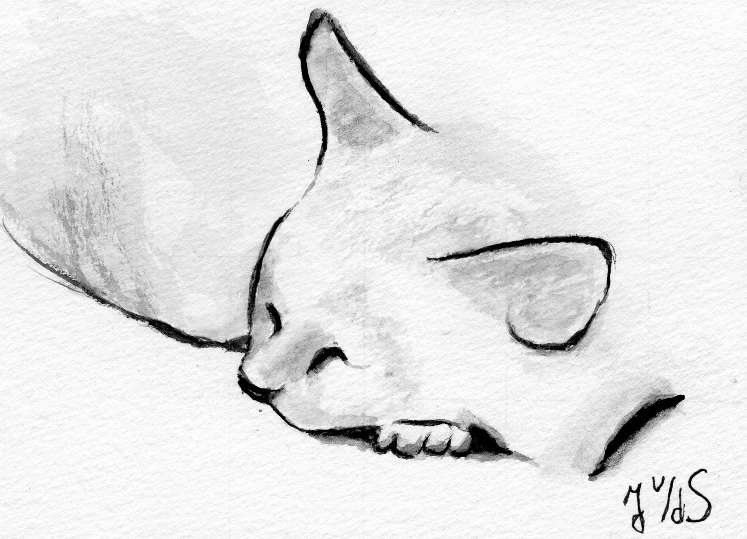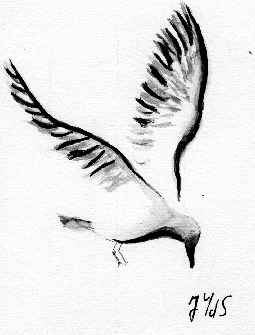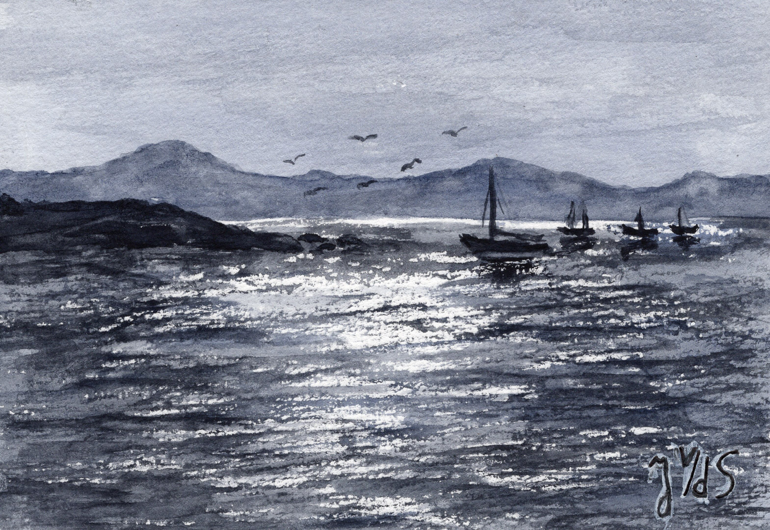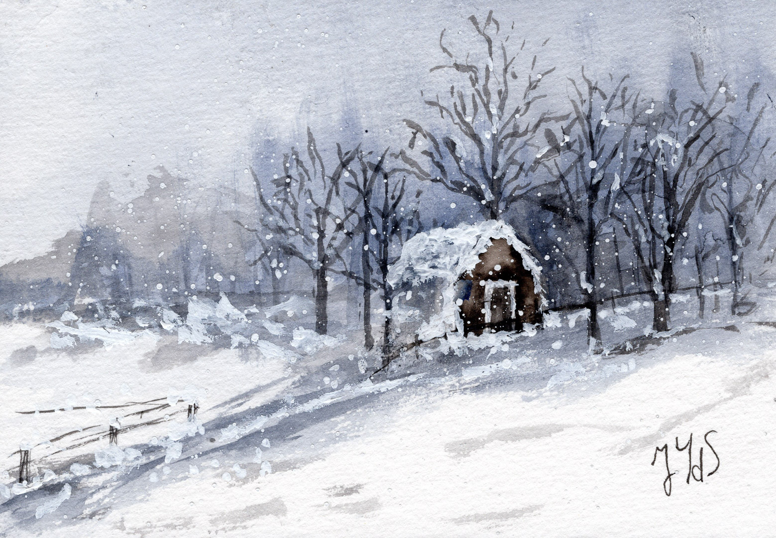 Ik maak ook zelf kaarten — aquarel op papier, geplakt op een kartonnen kaart.